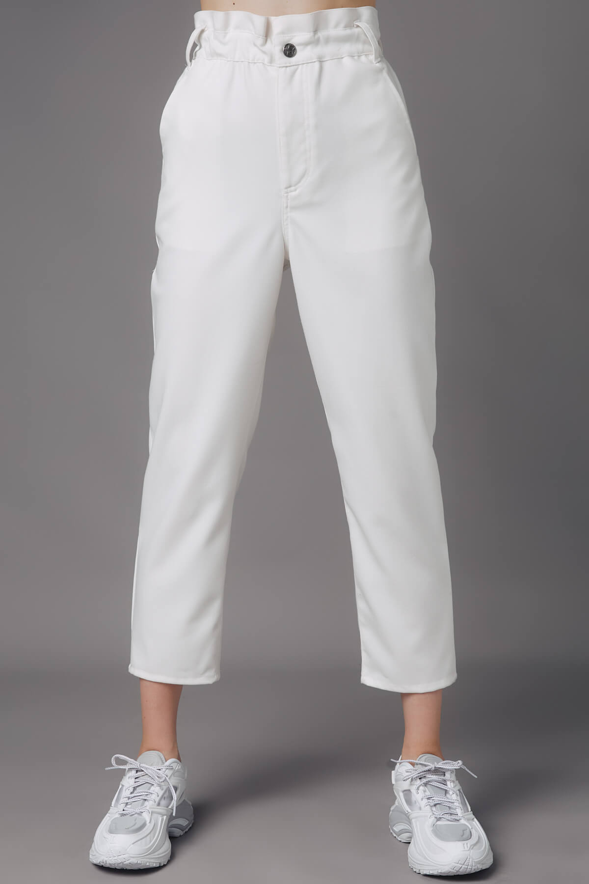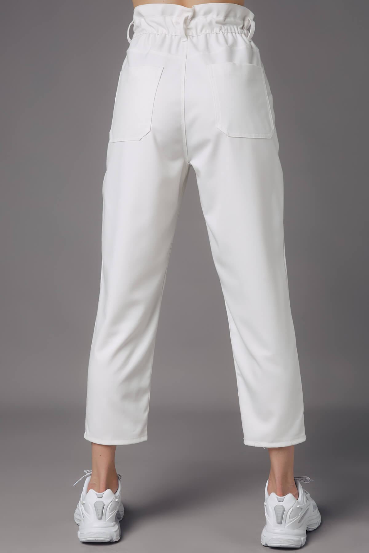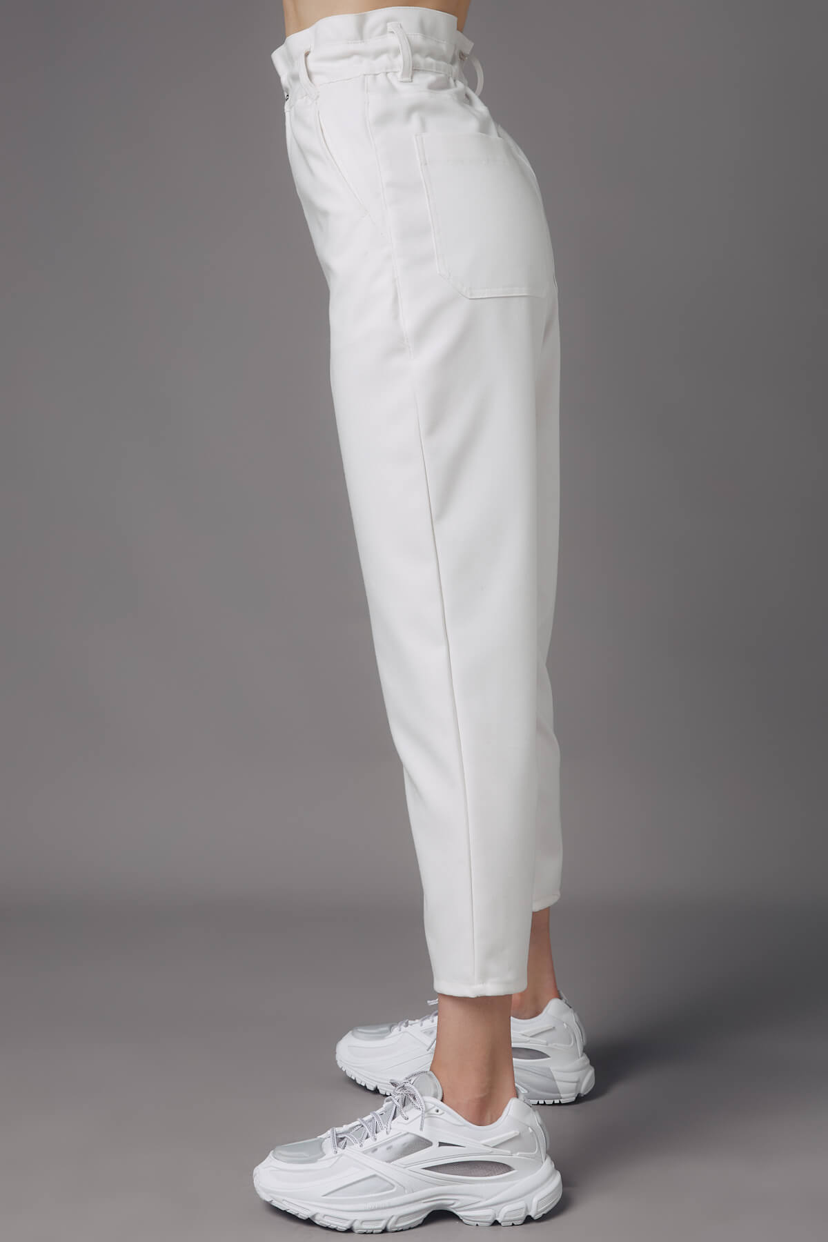 Trousers- crop- tire on the belt- side pockets- outer pockets on the back