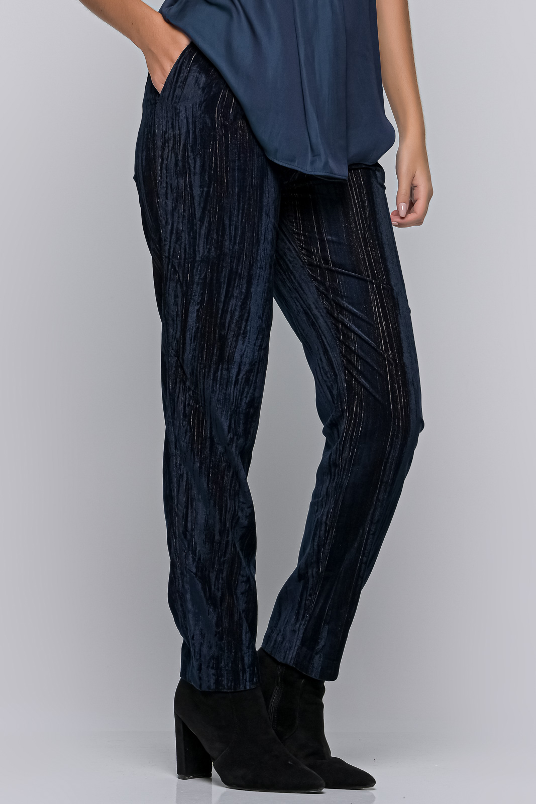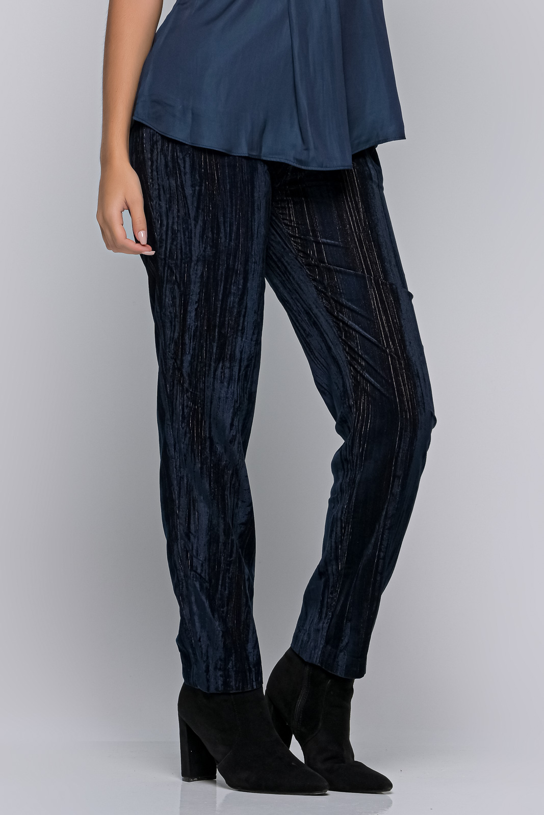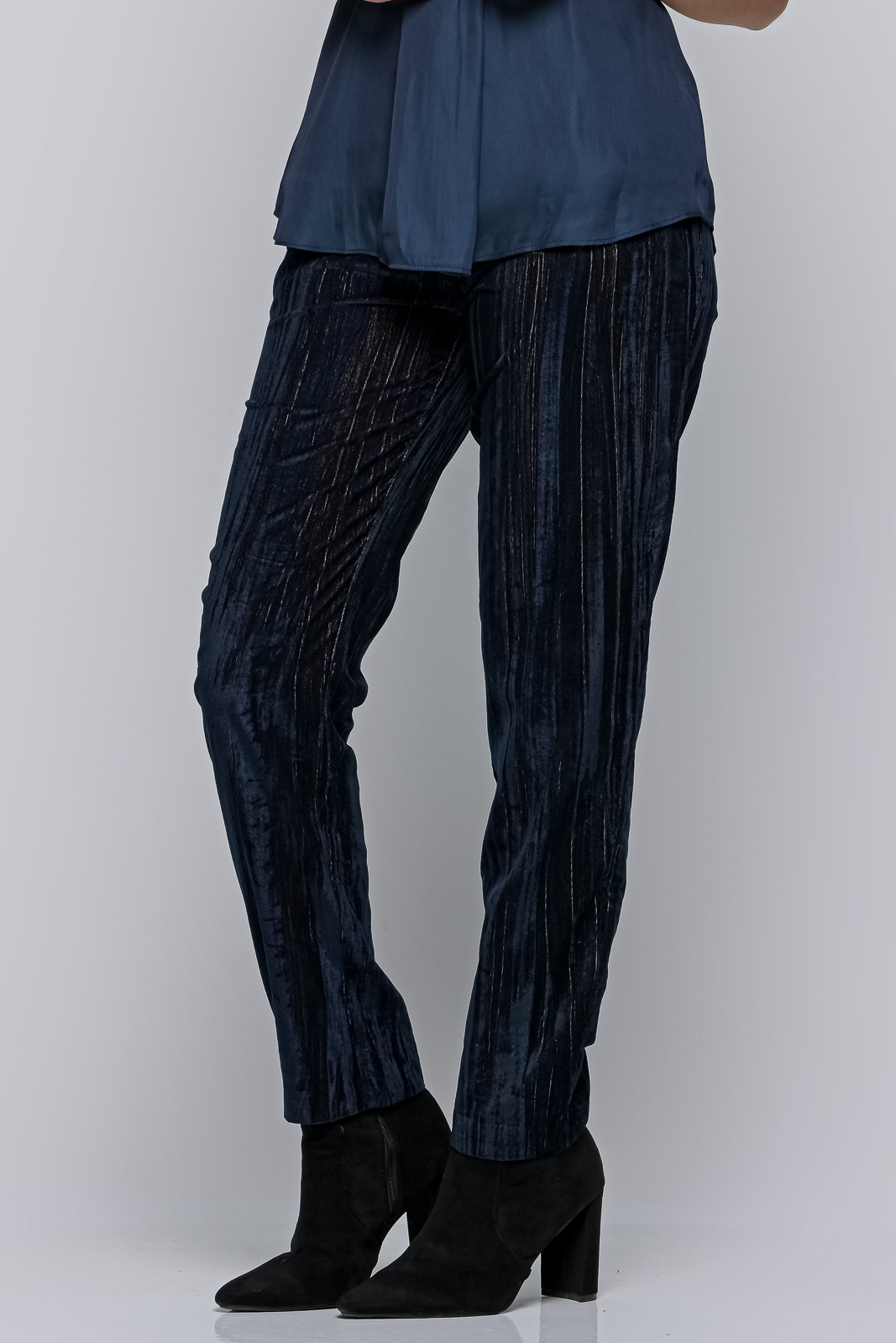 Velvet trousers in a straight line, with pleats.