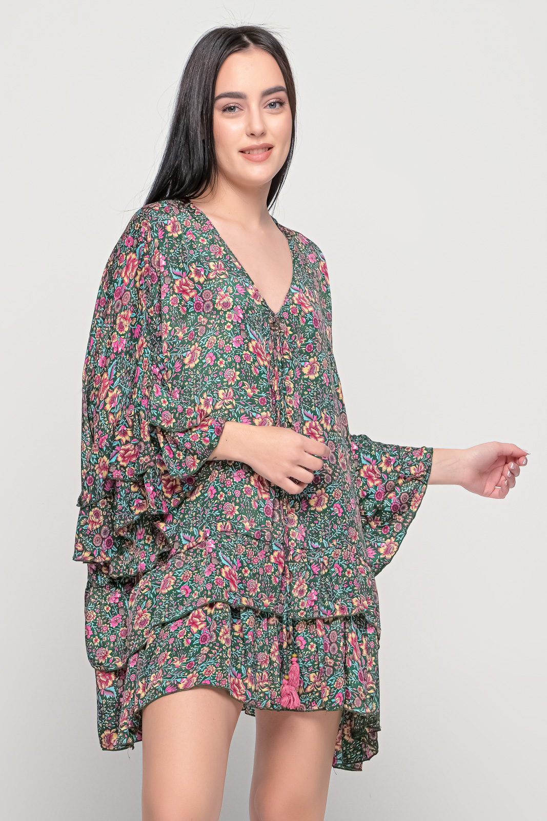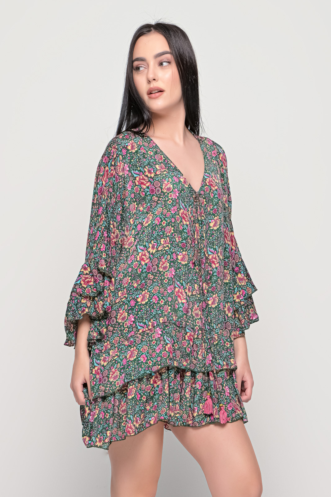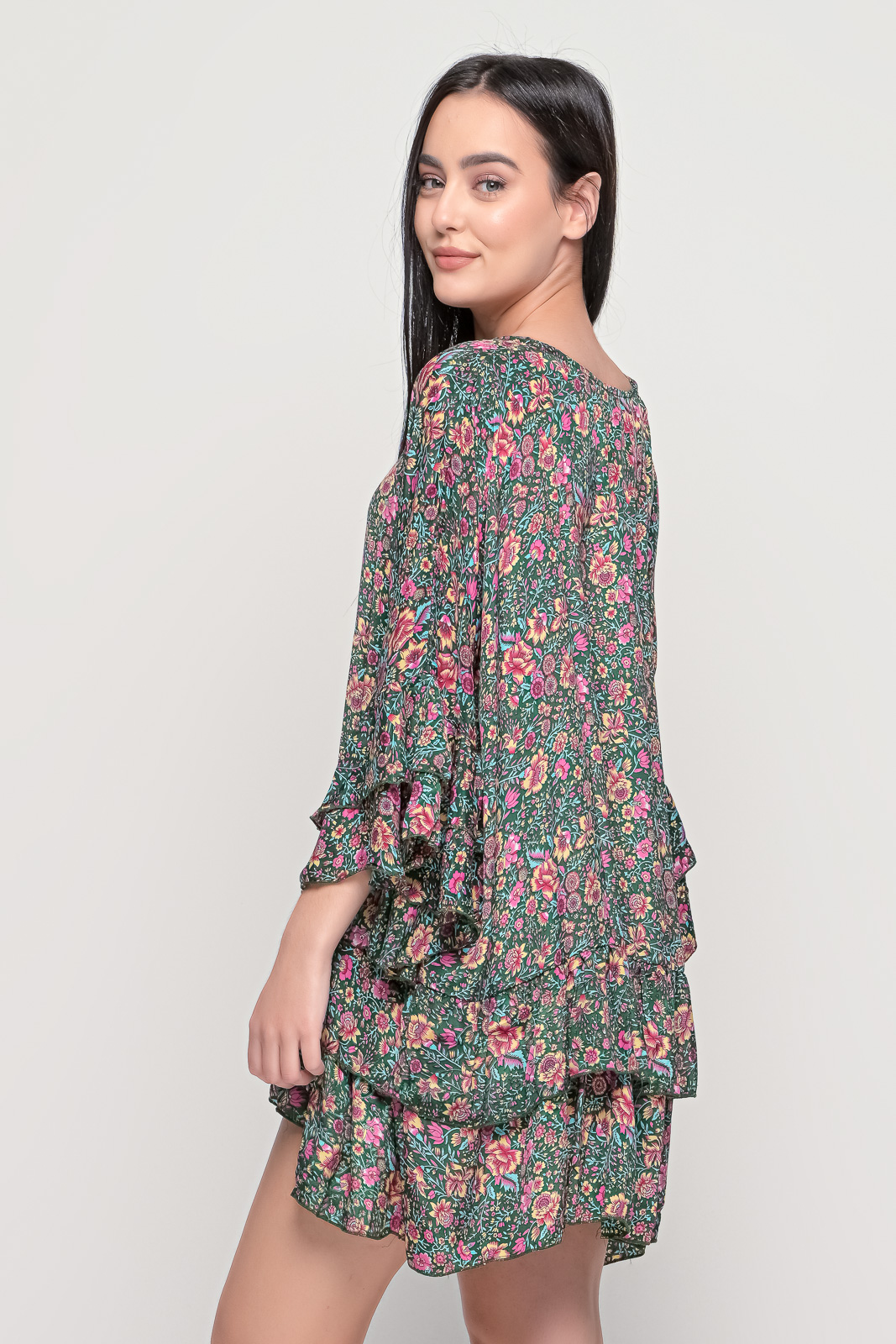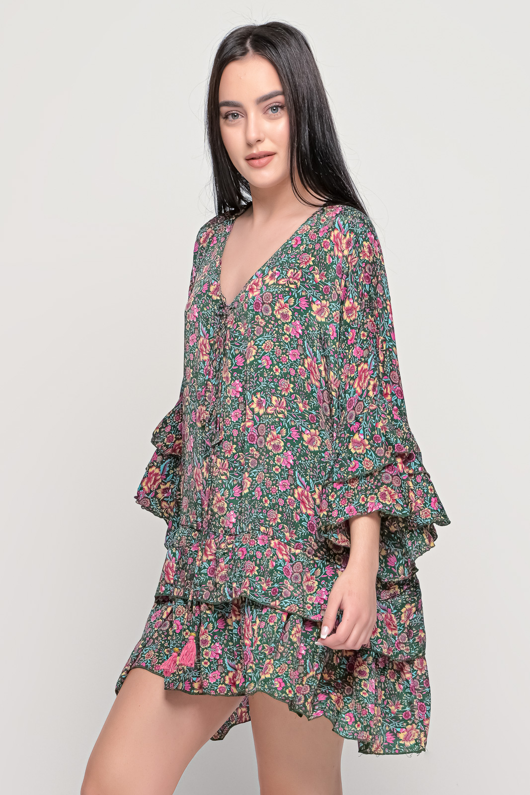 Φόρεμα με βολάν στα μανίκια και στο κάτω μέρος bohostyle
