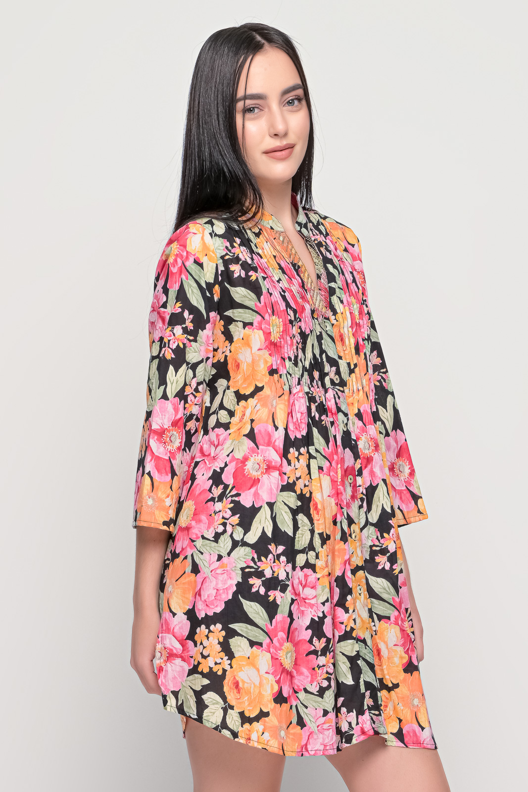 Πουκάμισο/φόρεμα φλοράλ με κρουαζέ μανίκια και κουμπιά