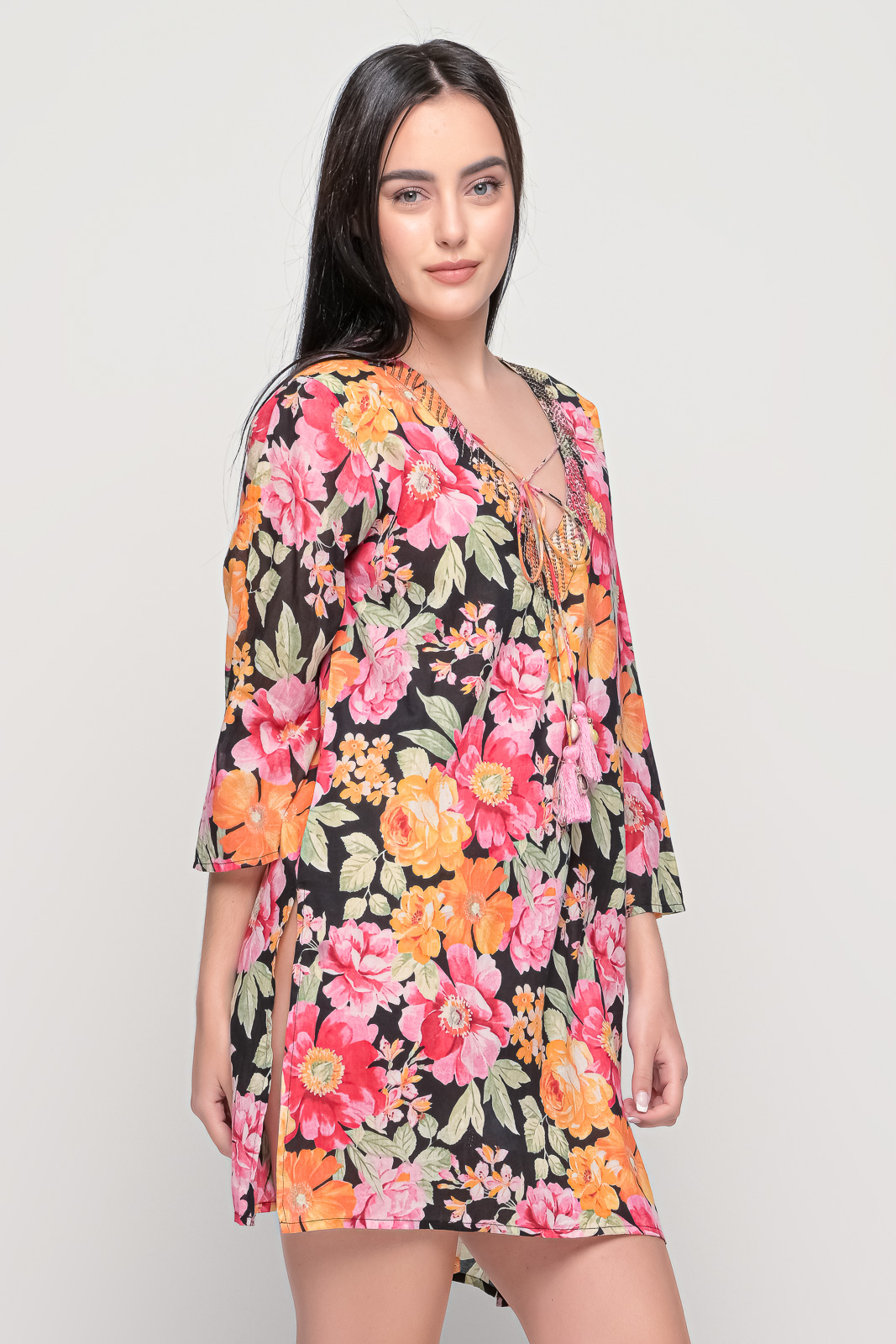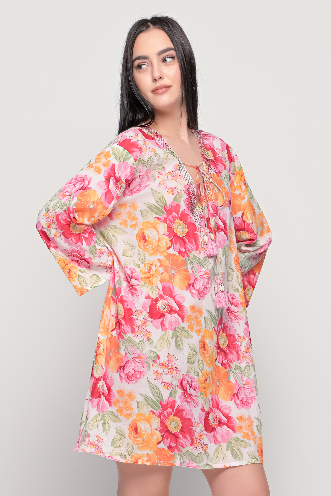 Μπλουζοφόρεμα φλοράλ με κρουαζέ μανίκια.