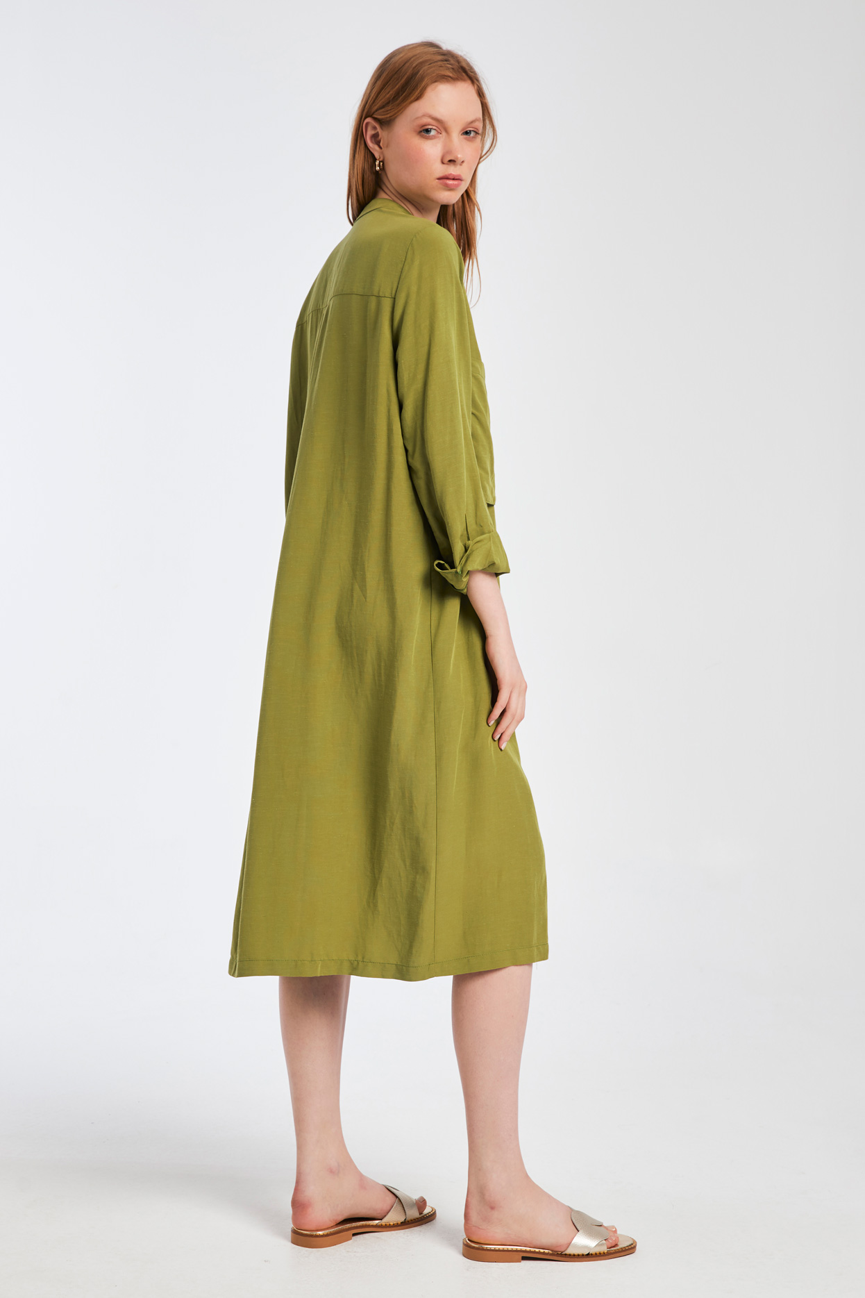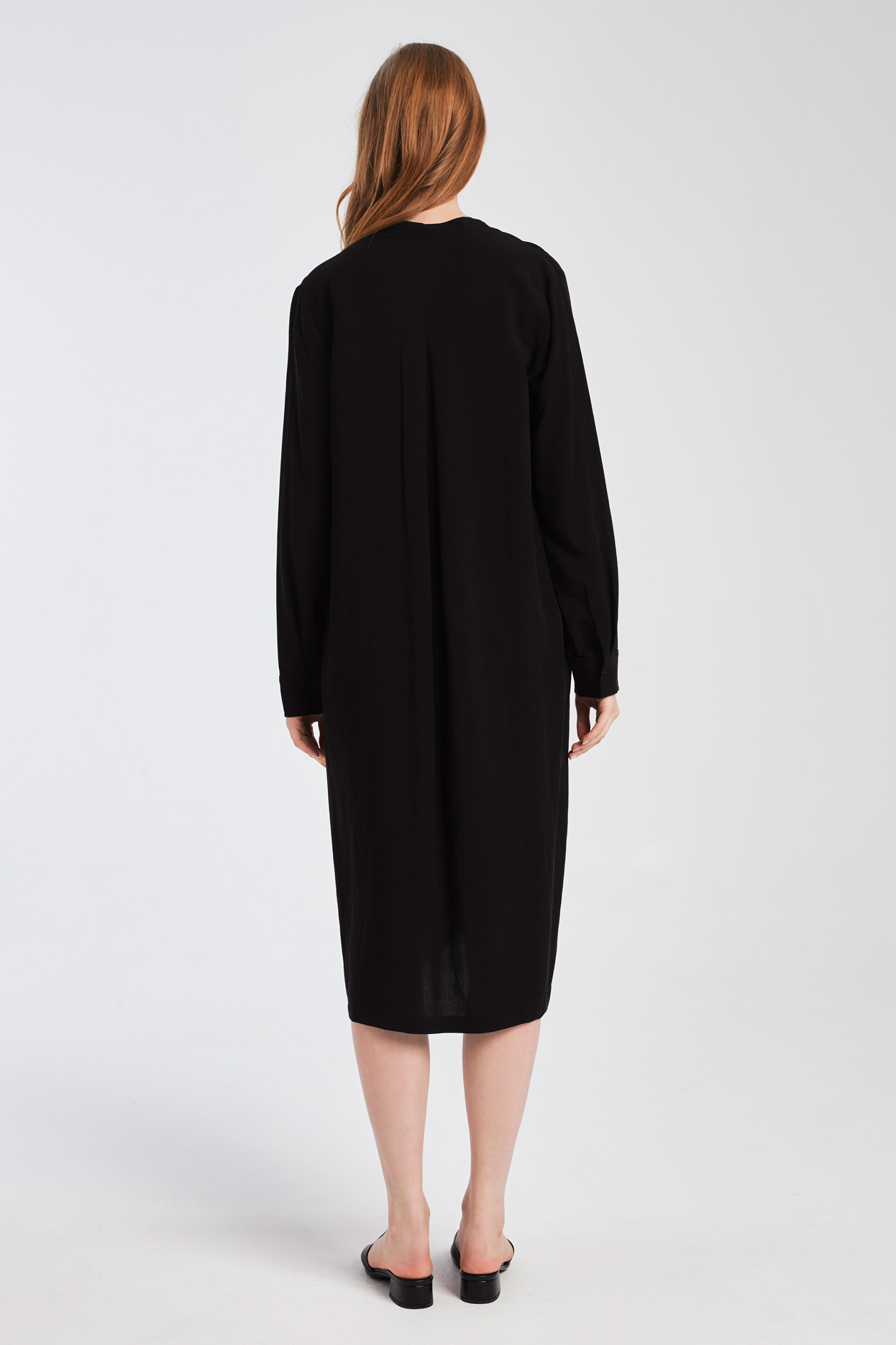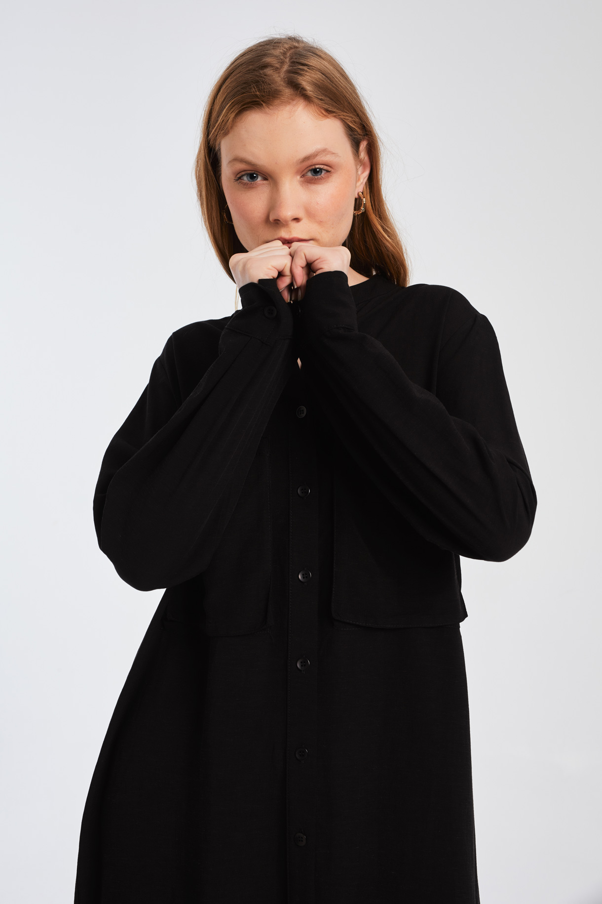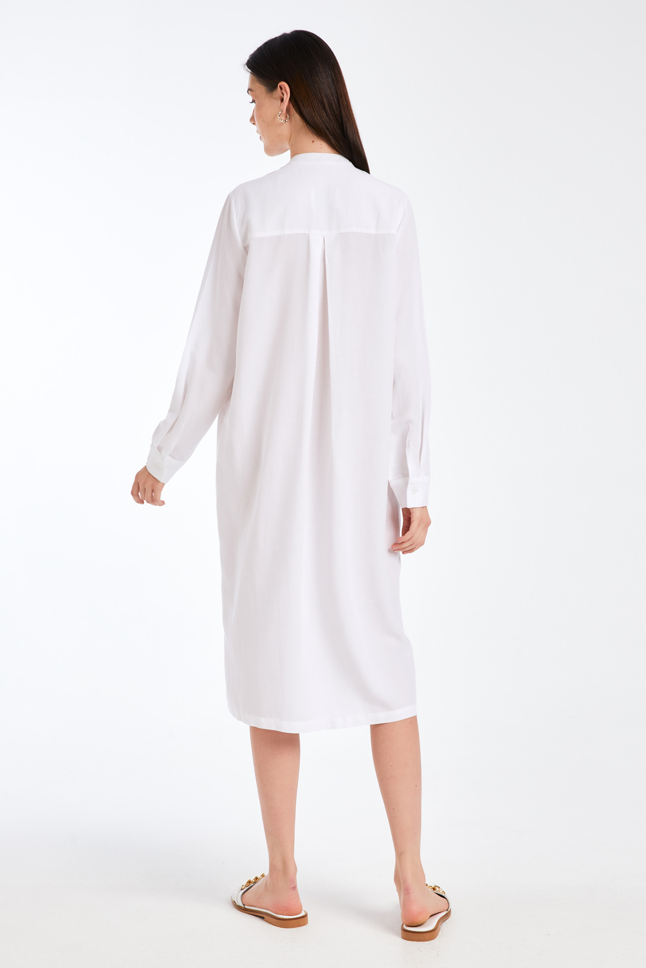 Πουκαμισοφόρεμα, Μακρύ μανίκι με μανσέτα, Μάο γιακάς, 2 τσέπες στο στήθος, Κλείσιμο εμπρός με 10 κουμπιά,