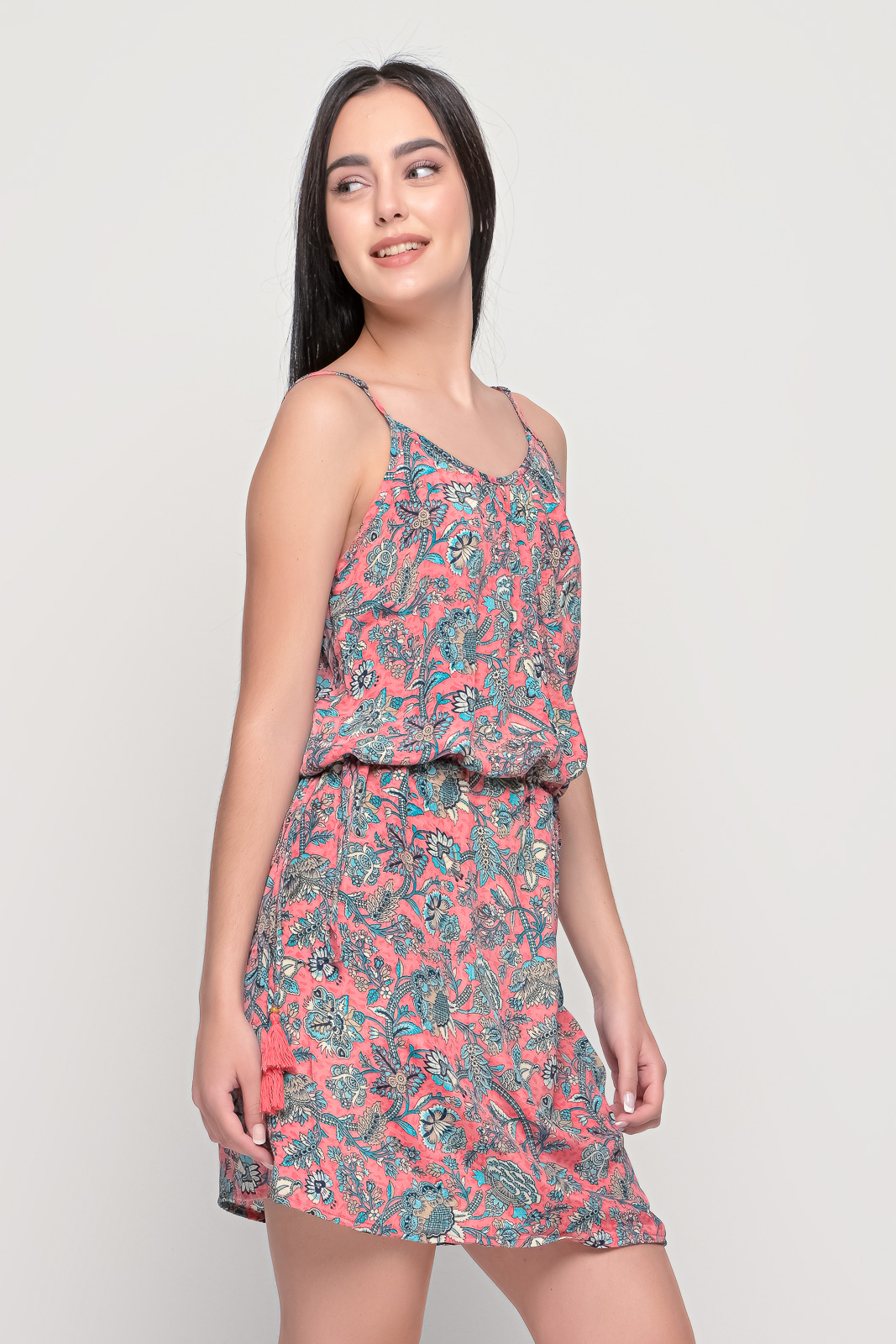 Φόρεμα φλοράλ με ζωνάκι στη μέση που σφίγγει