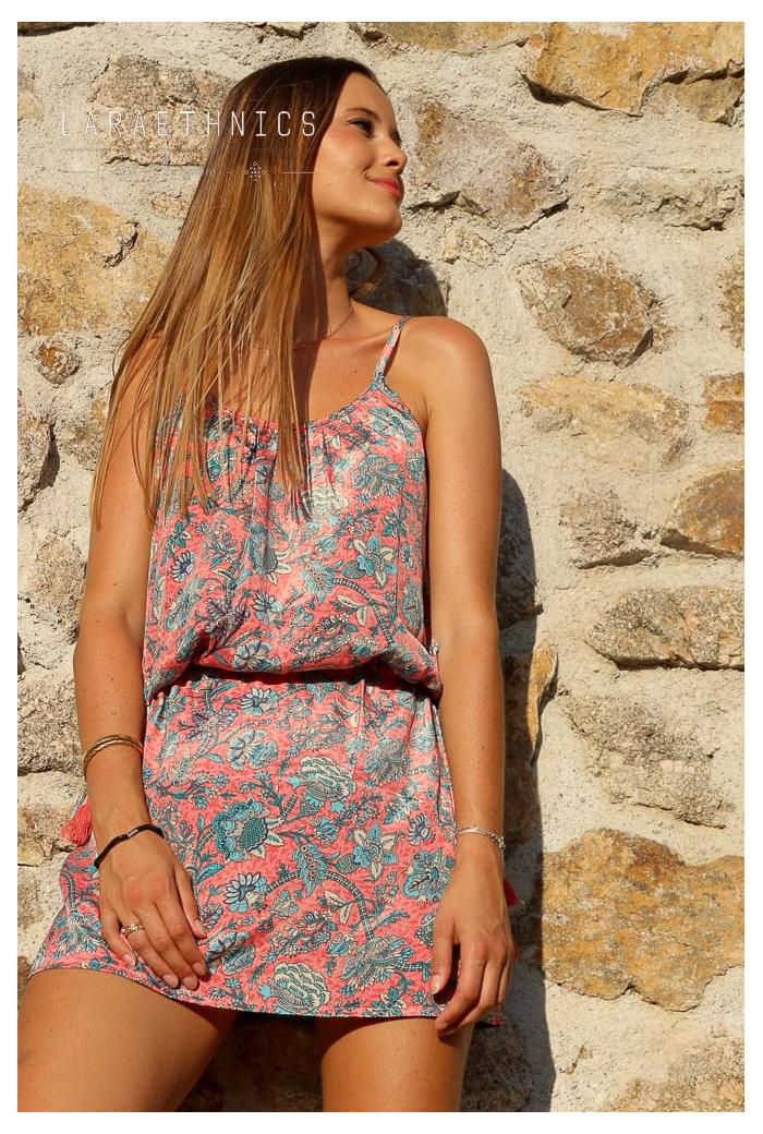 Φόρεμα φλοράλ με ζωνάκι στη μέση που σφίγγει.