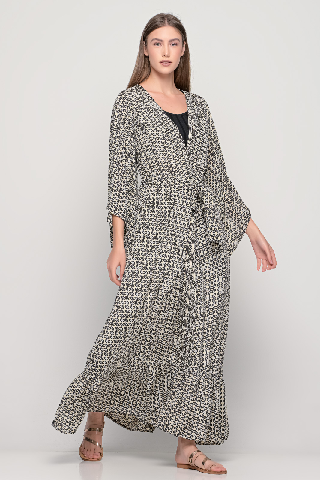 Κιμονό με βολάν στο κάτω μέρος και ζώνη στη μέση.