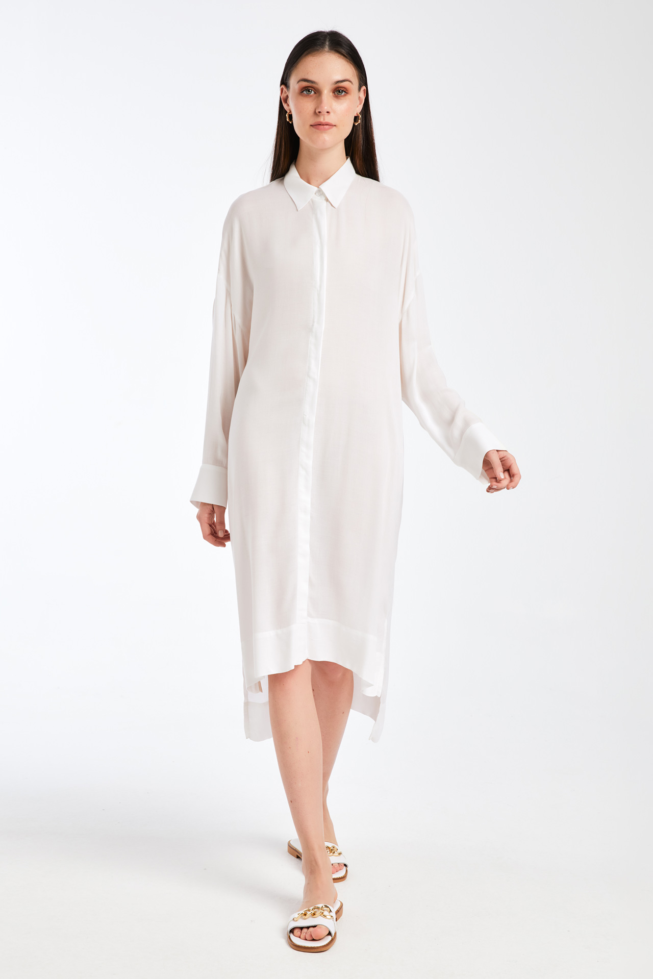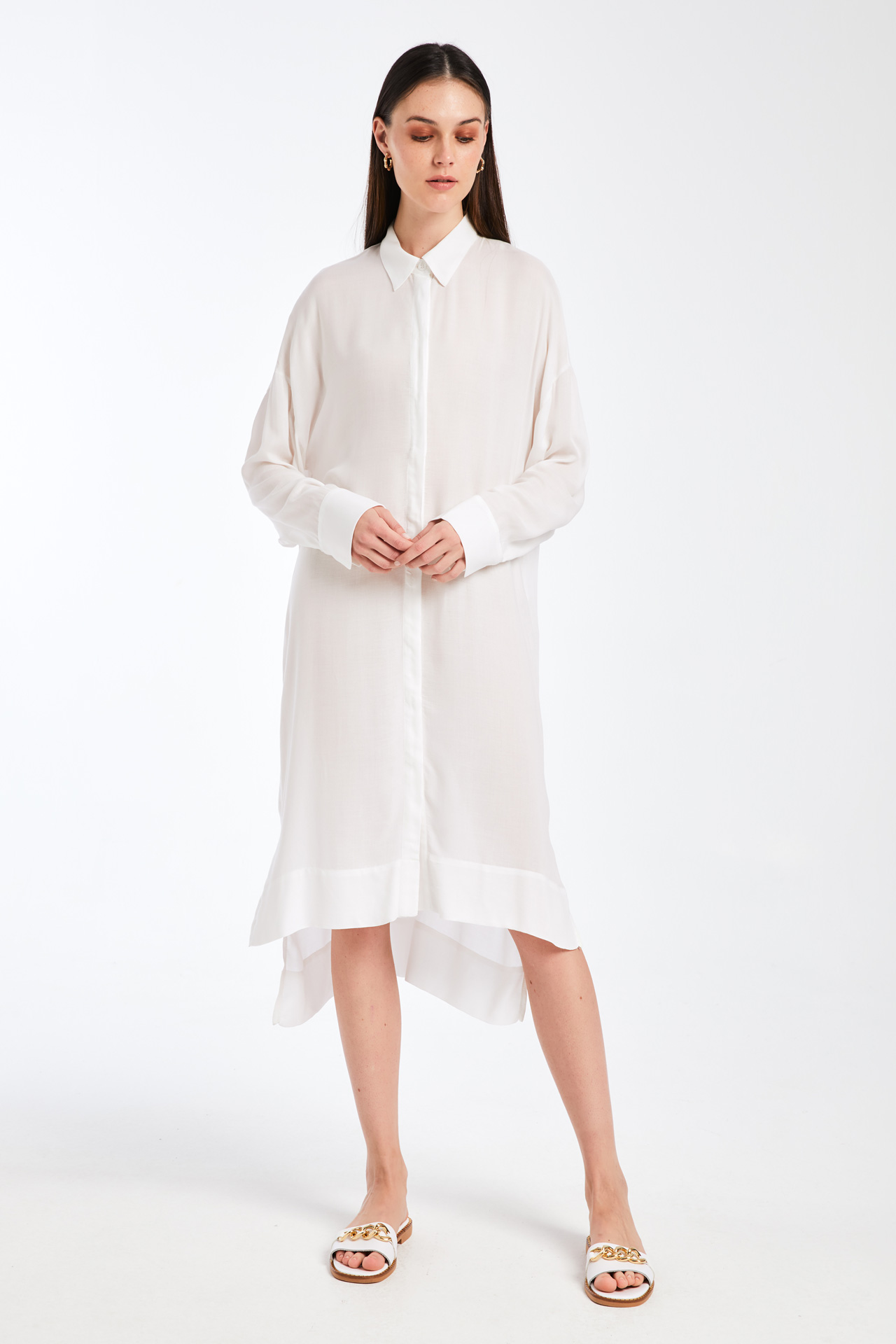 Loose fit πουκάμισο, Μακρύ μανίκι με μανσέτα και σκίσιμο, Γιακάς, Πατιλέτα με 9 κουμπιά εμπρός, ,