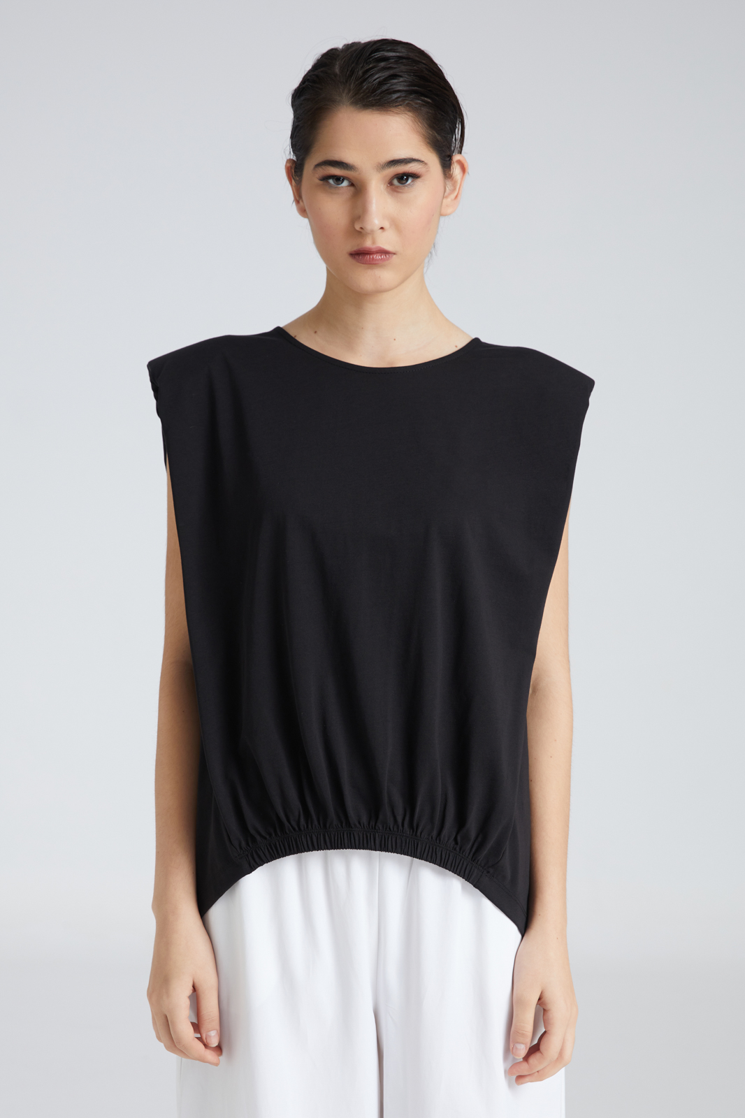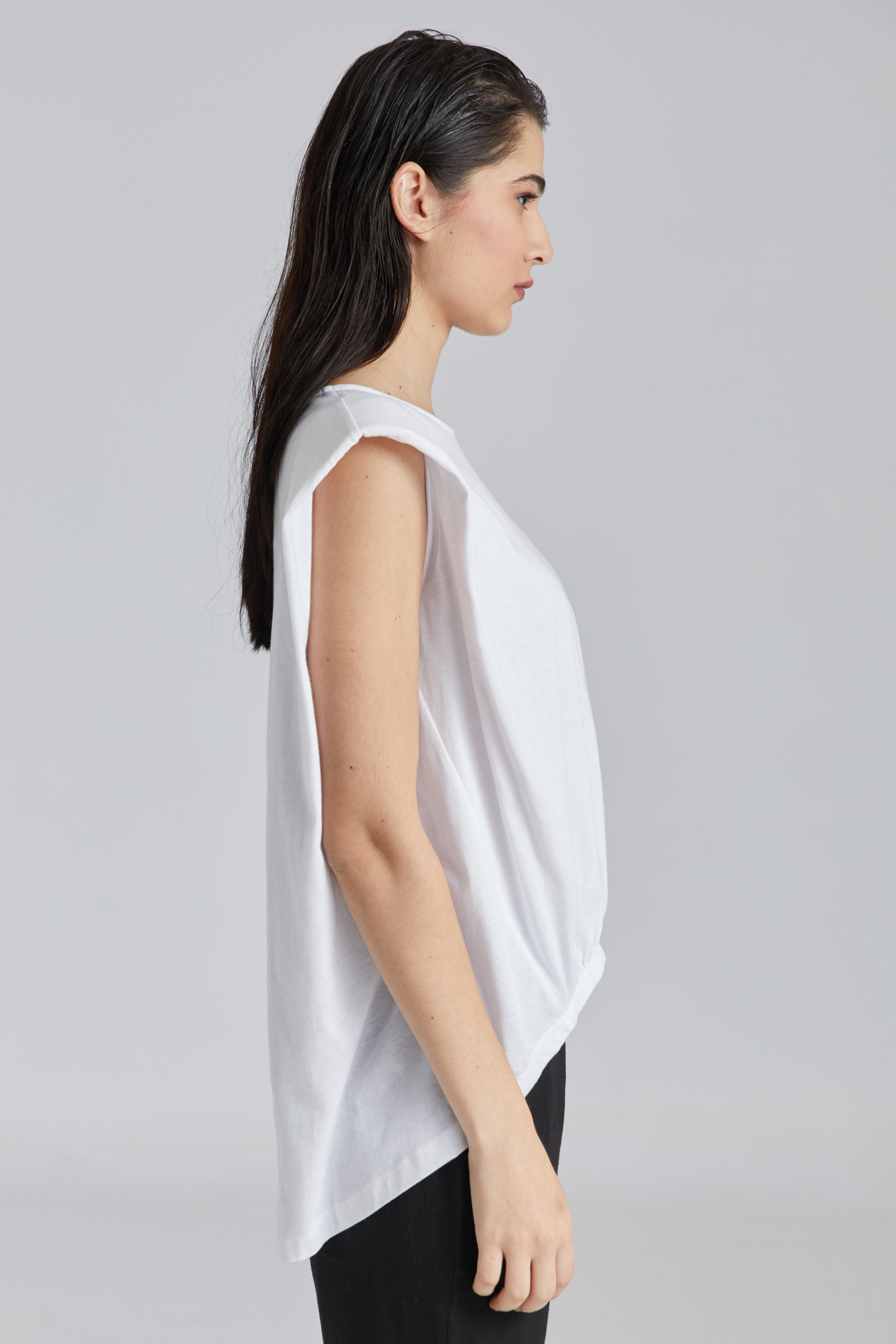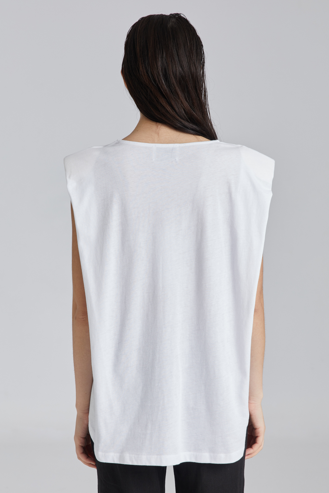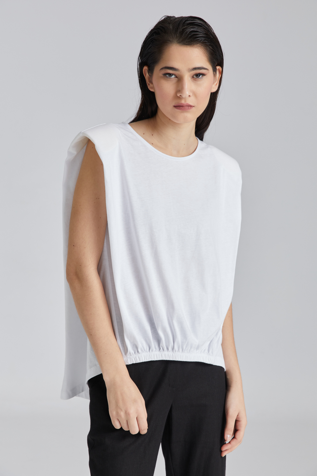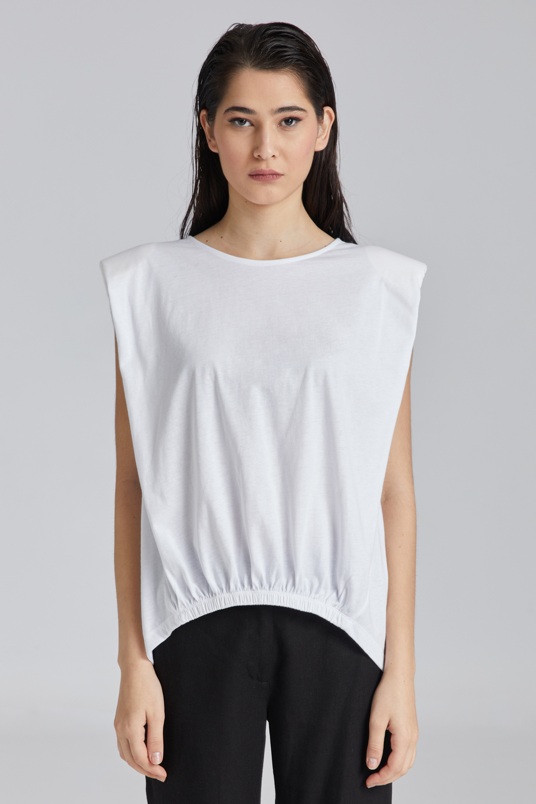 Το Iris T-shirt είναι το βαμβακερό αμάνικο κομμάτι με έντονους ώμους και λάστιχο στο μπροστινό τελείωμα για να τελειοποιήσει κάθε σου στυλ.