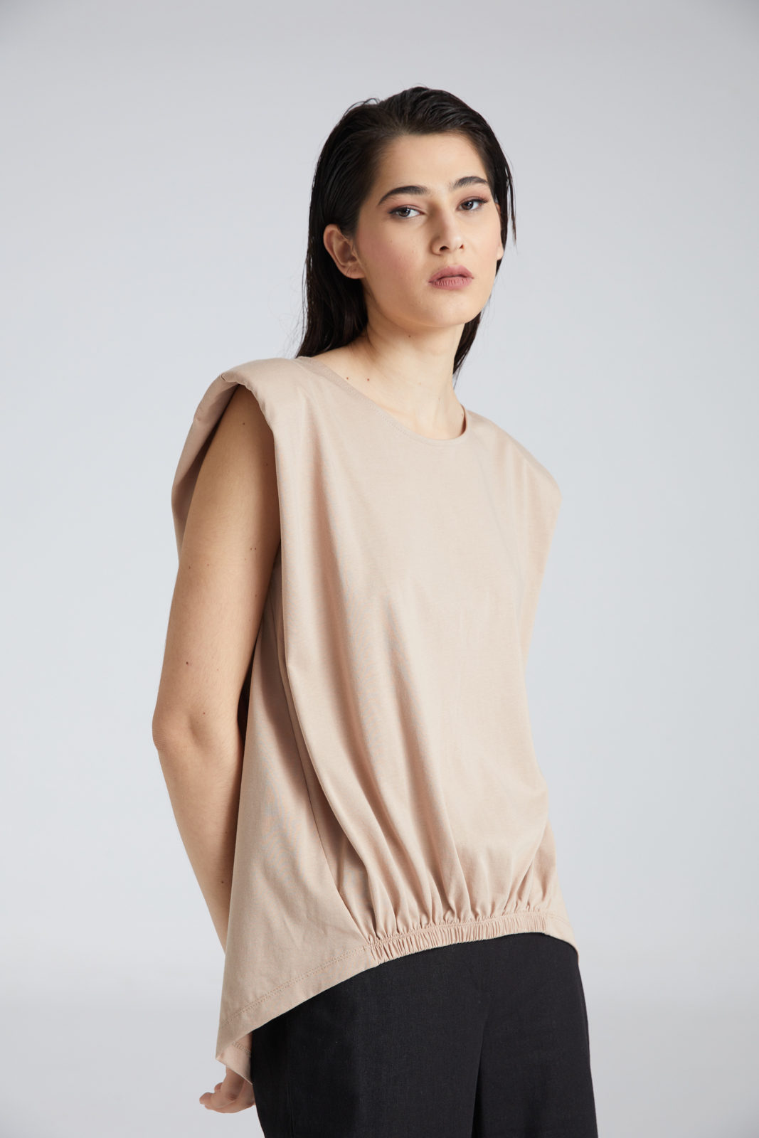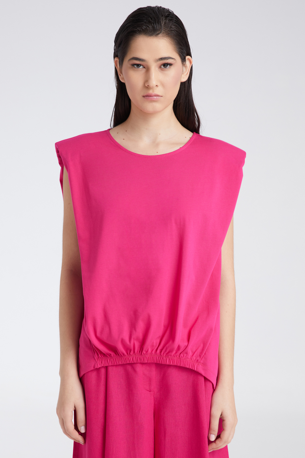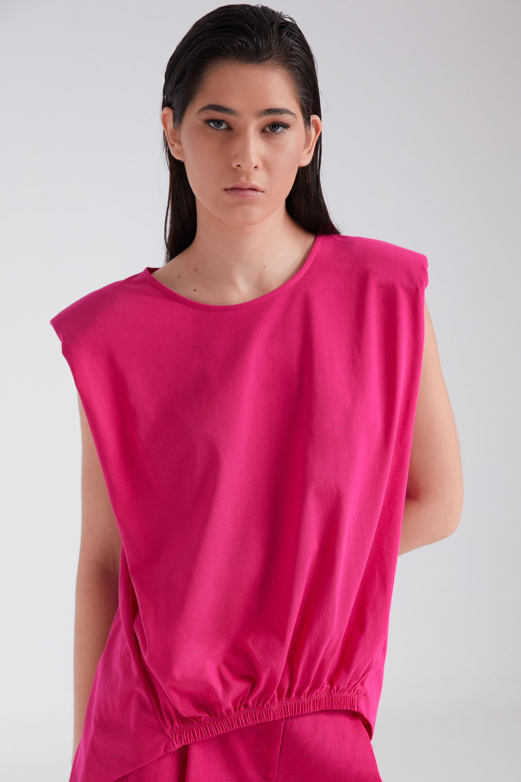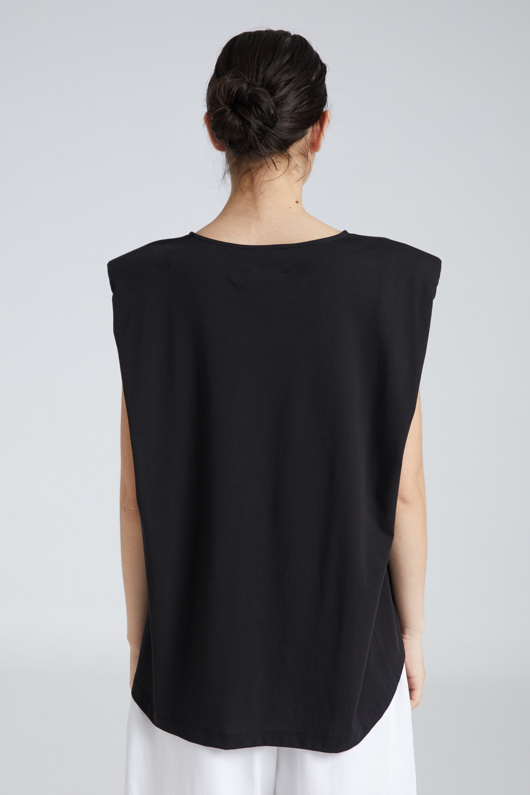 Το Iris T-shirt είναι το βαμβακερό αμάνικο κομμάτι με έντονους ώμους και λάστιχο στο μπροστινό τελείωμα για να τελειοποιήσει κάθε σου στυλ.
