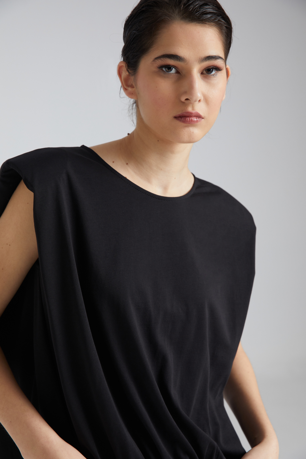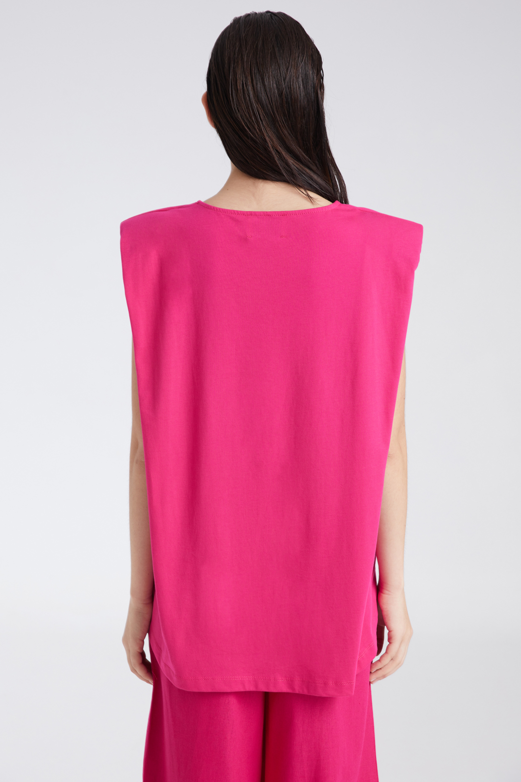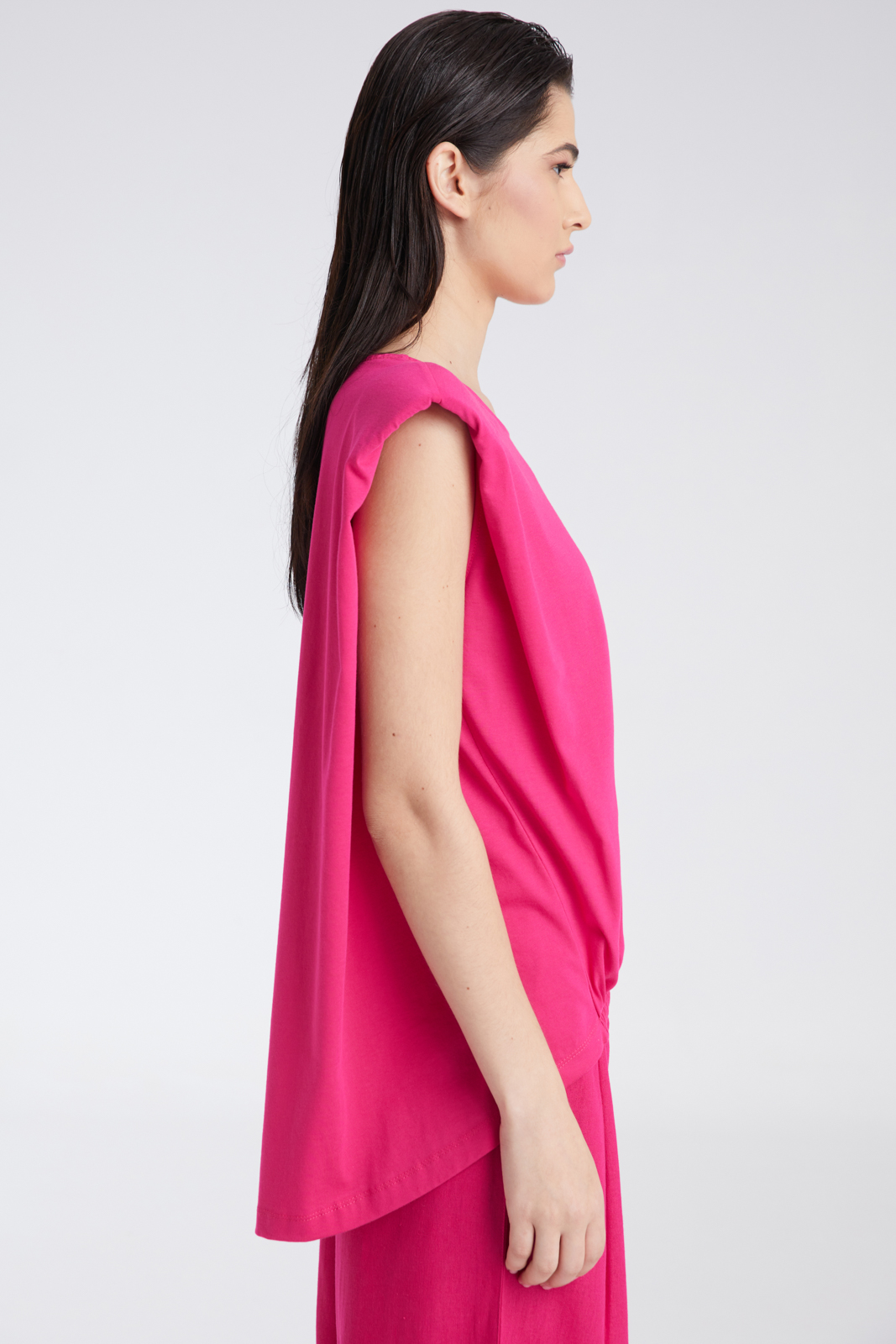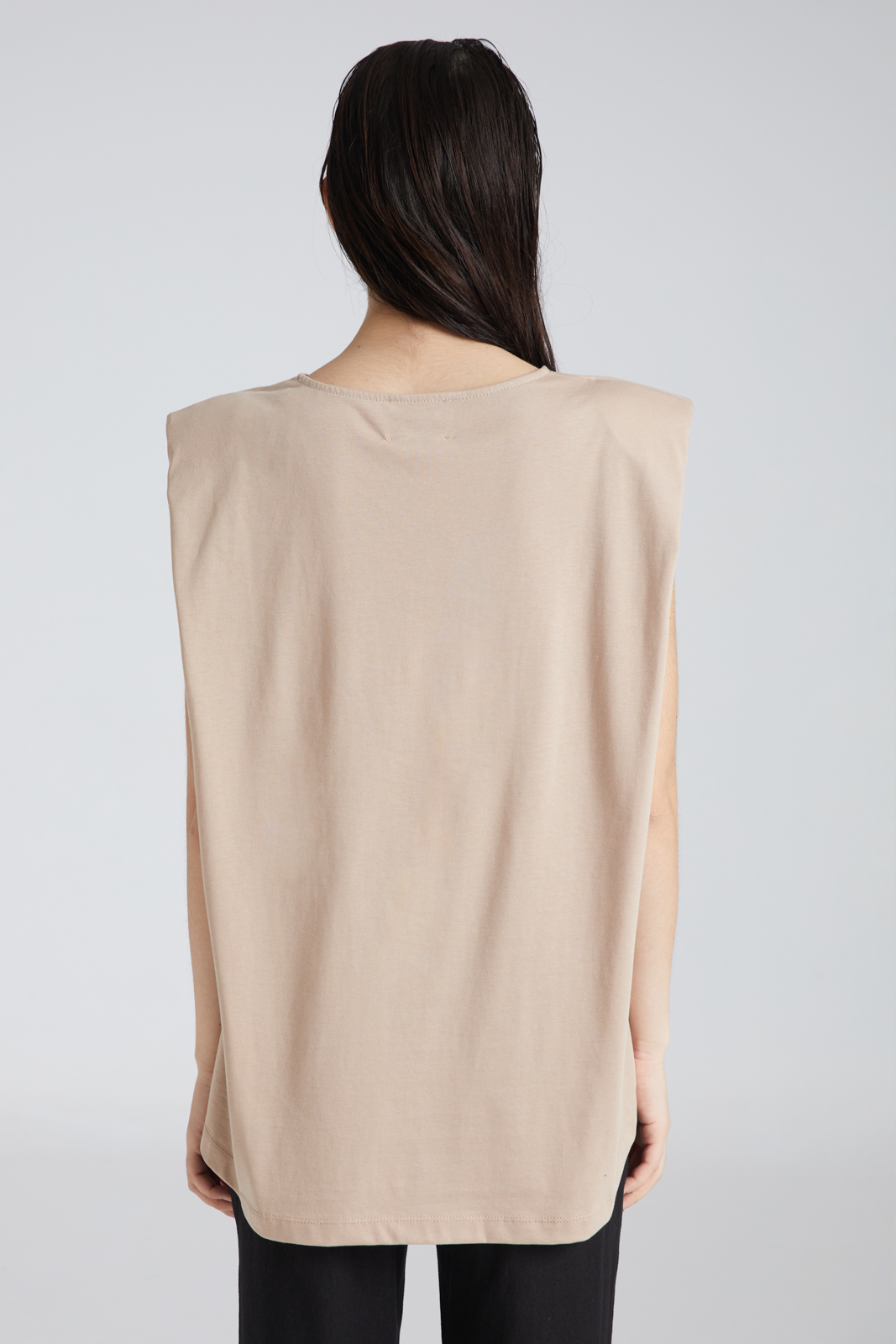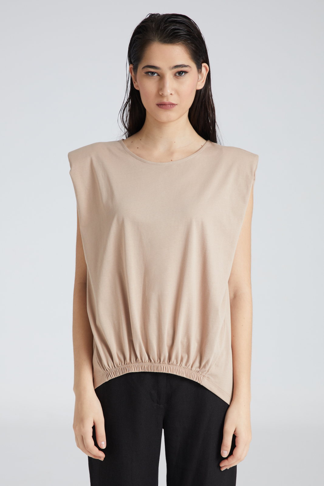 Το Iris T-shirt είναι το βαμβακερό αμάνικο κομμάτι με έντονους ώμους και λάστιχο στο μπροστινό τελείωμα για να τελειοποιήσει κάθε σου στυλ.