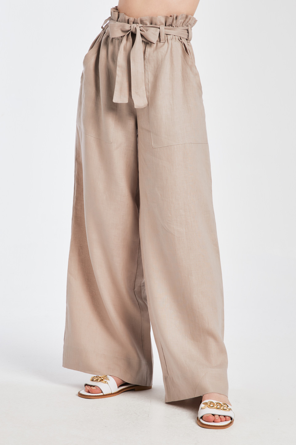 Wide fit παντελόνα, 2 πλαϊνές τσέπες, 2 πίσω τσέπες, Λάστιχο στη μέση, Θηλίκια στη μέση με ζώνη, Wide fit pants