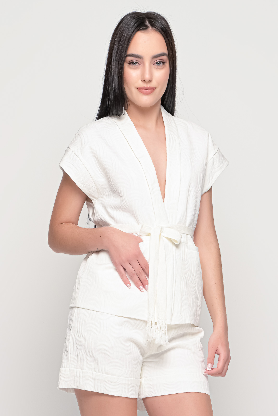 Αμάνικο γιλέκο με ανάγλυφη υφή και ζωνάκι στη μέση.
