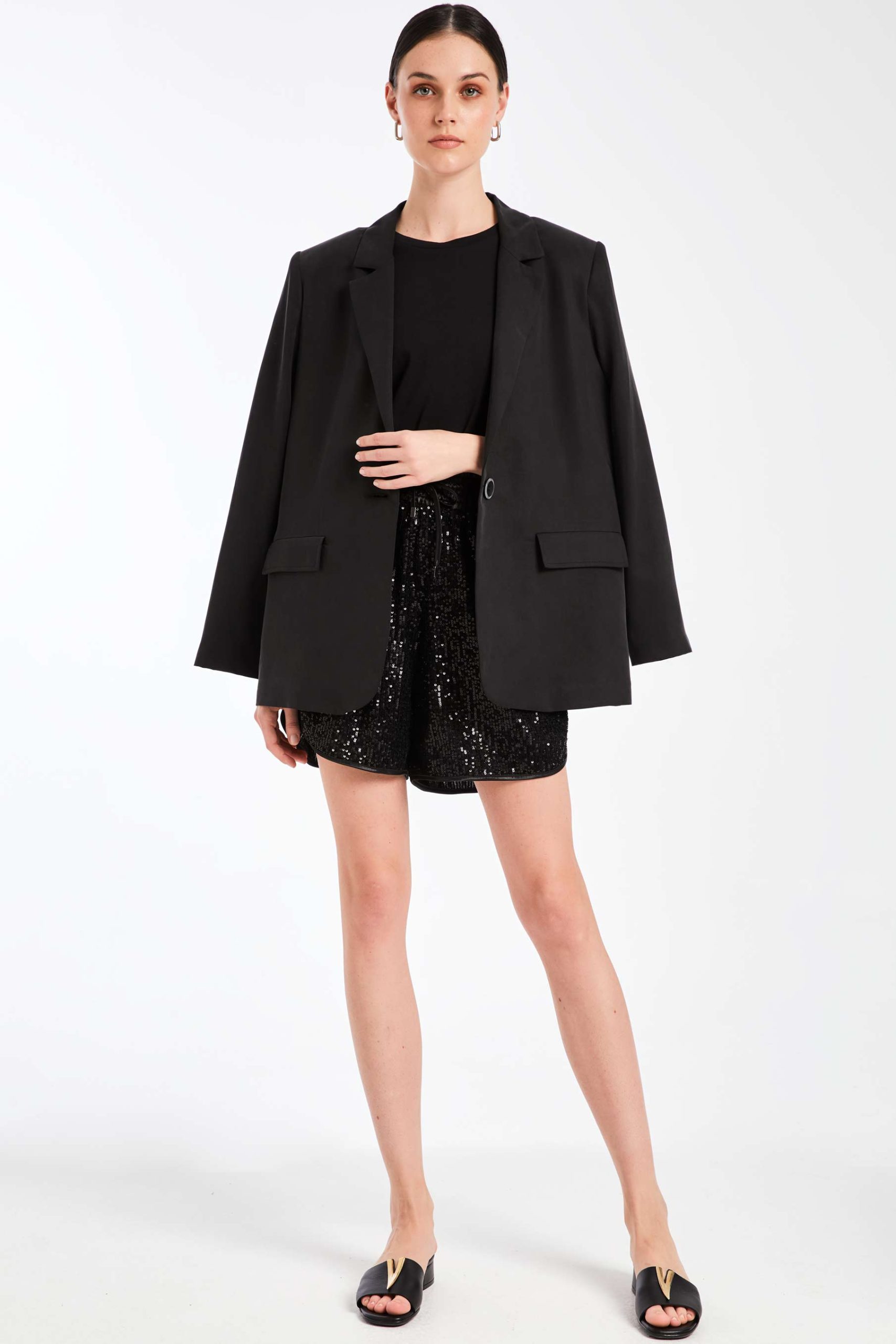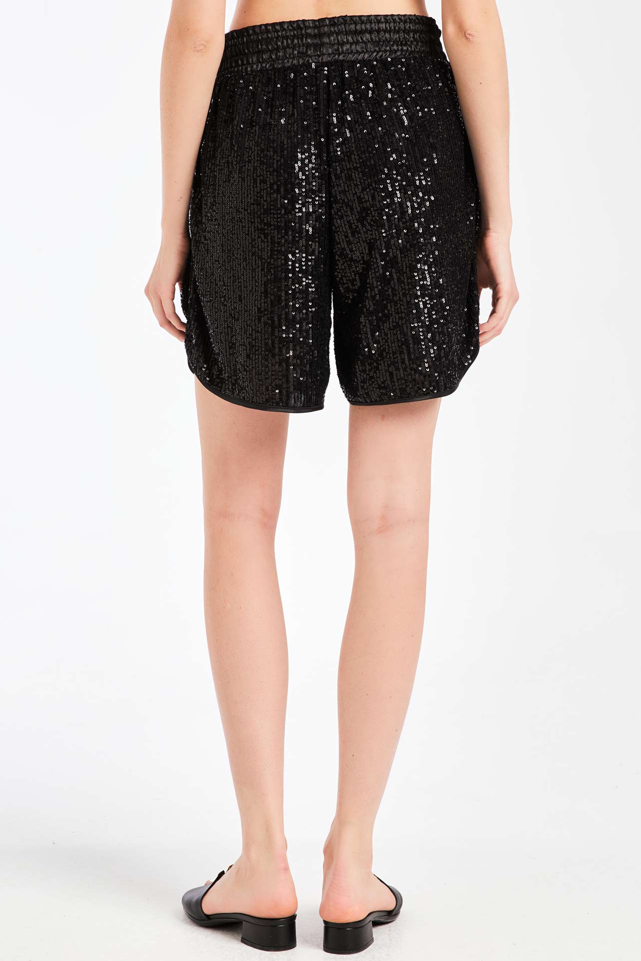 Σορτς με παγιέτα, 2 πλαϊνές τσέπες, Λαστιχο στη μέση, Κορδόνι που δένει στη μέση, Στρογγυλεμένα τελειώματα,