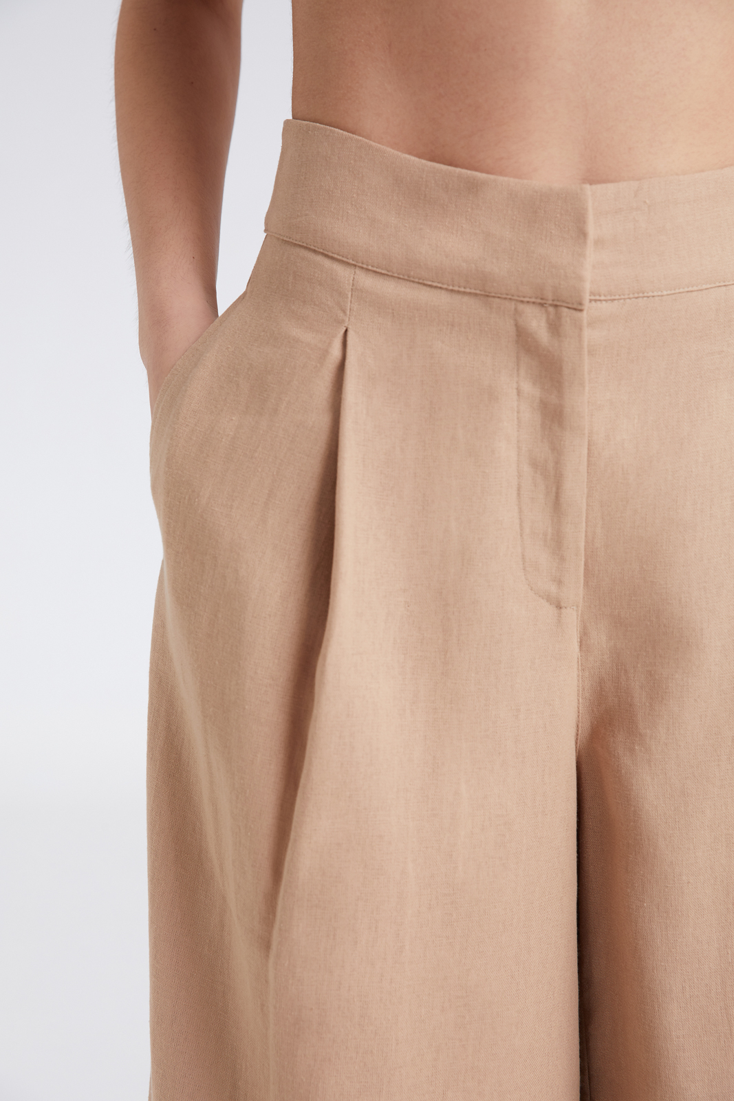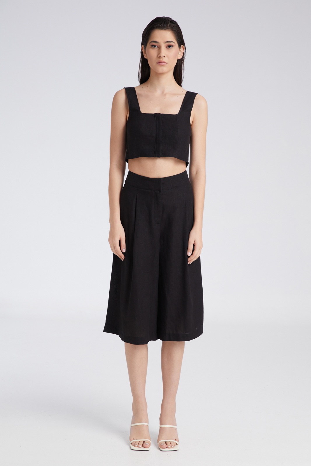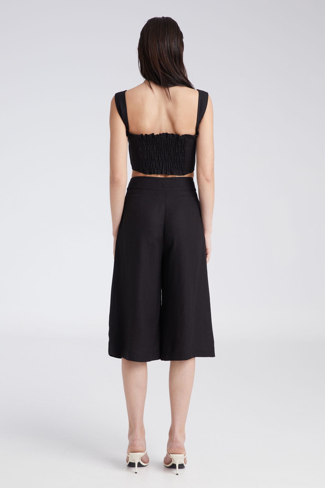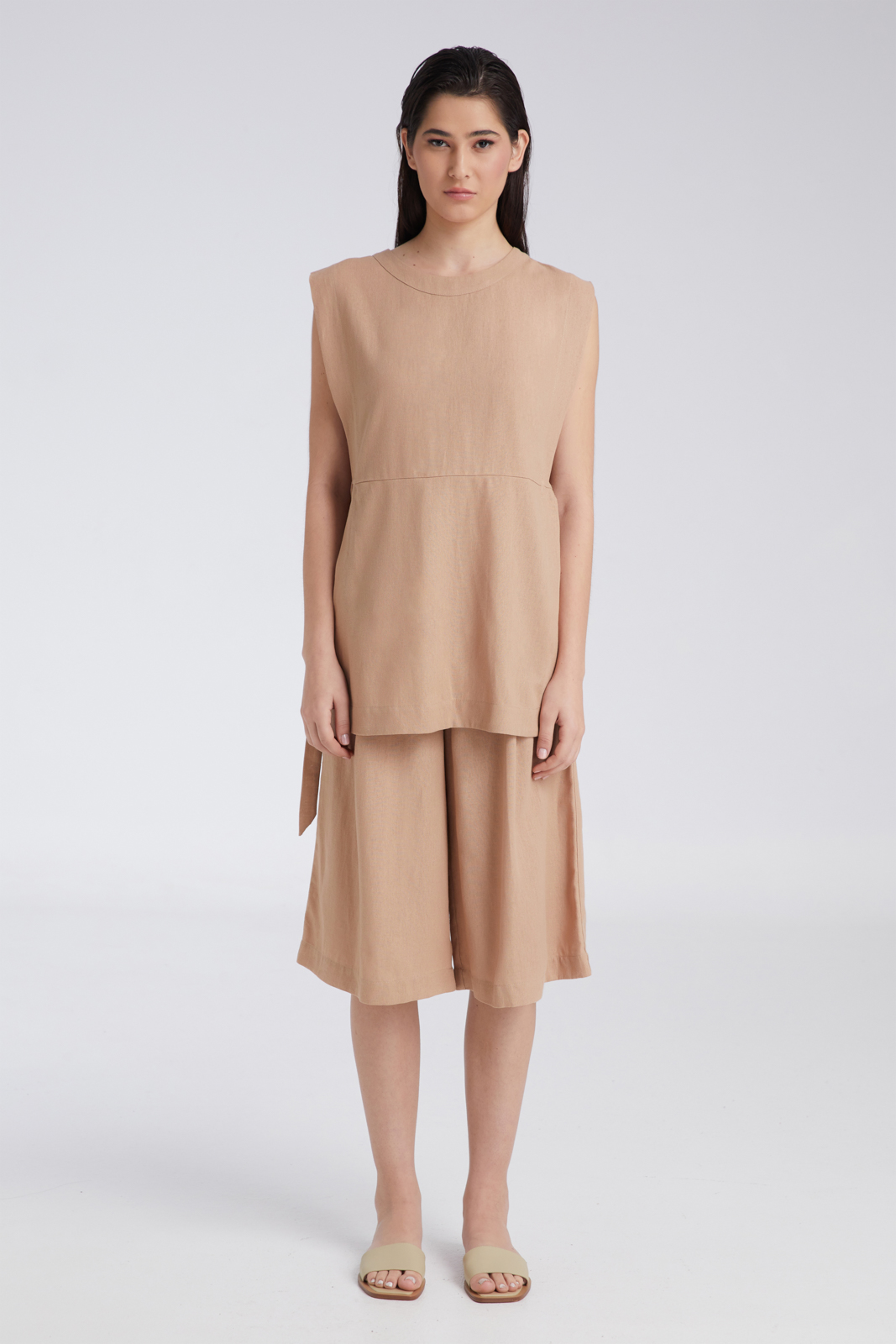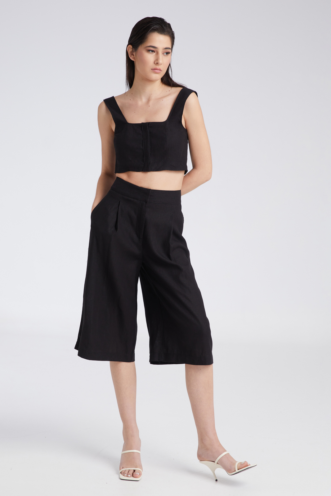 Με τη λινή και δροσερή της υφή η Thira Cullotes σε προτρέπει να περιηγηθείς στα πλακόστρωτα σοκάκια των ελληνικών νησιών. Φόρεσέ το με το Thira Top για να το απογειώσεις.