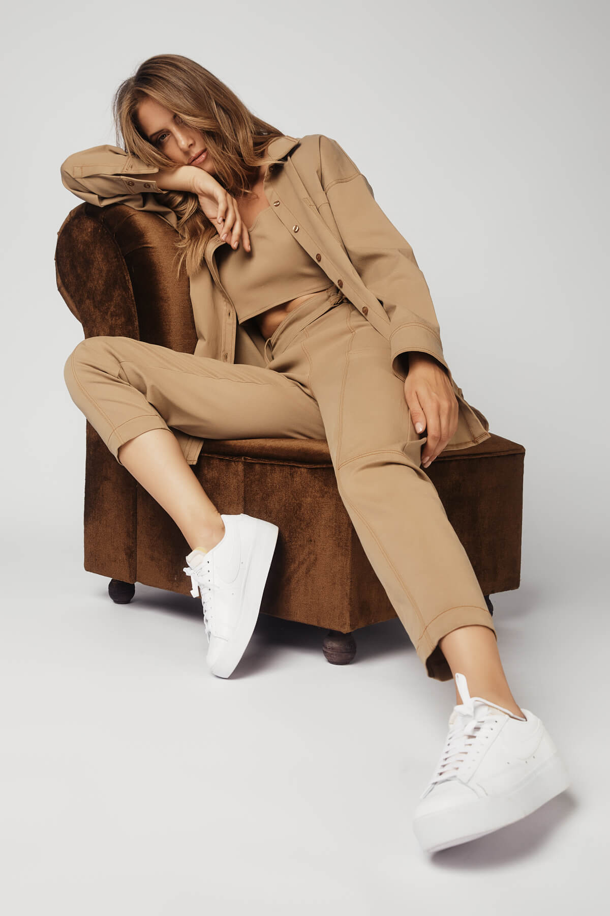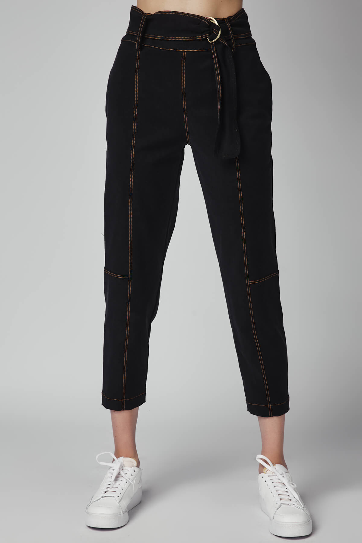 Παντελόνι με μεταλλική ζώνη- κανονικό μήκος- εξωτερικές ραφές μπροστά και πίσω- κρυφό φερμουάρ στο πλάι Στενή γραμμή. Το μοντέλο είναι 1.75 και φοράει XSmall / 34