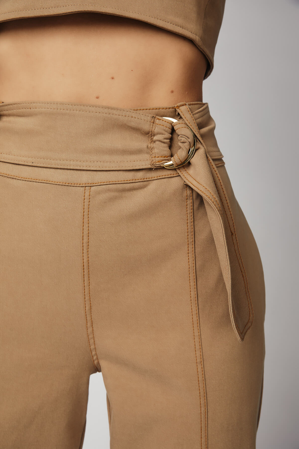 Παντελόνι με μεταλλική ζώνη- κανονικό μήκος- εξωτερικές ραφές μπροστά και πίσω- κρυφό φερμουάρ στο πλάι